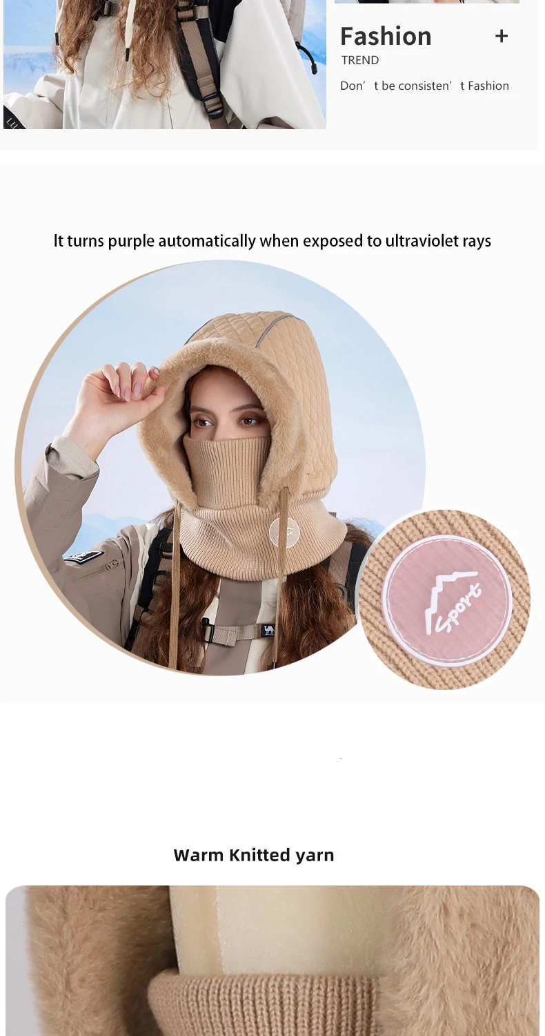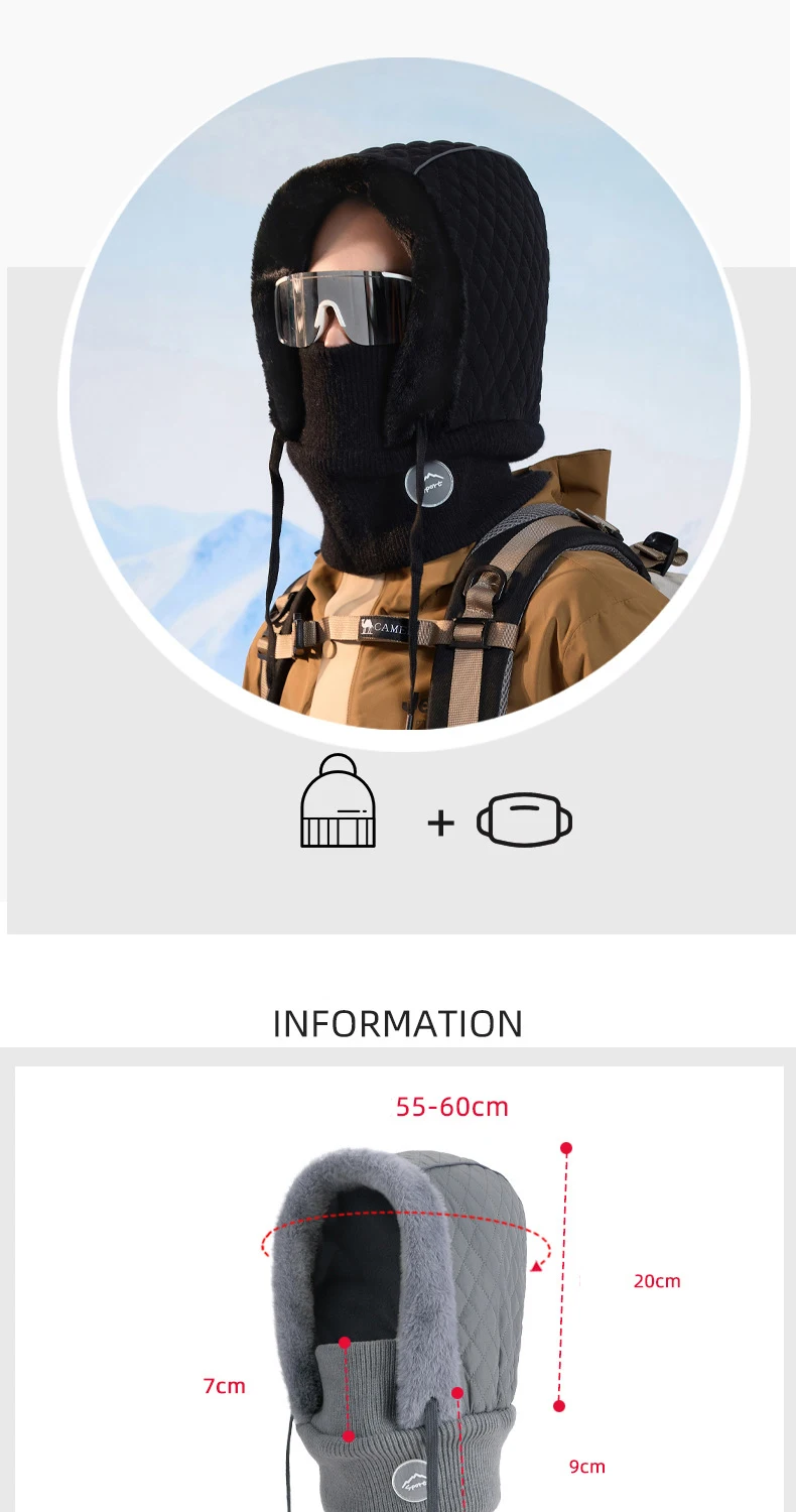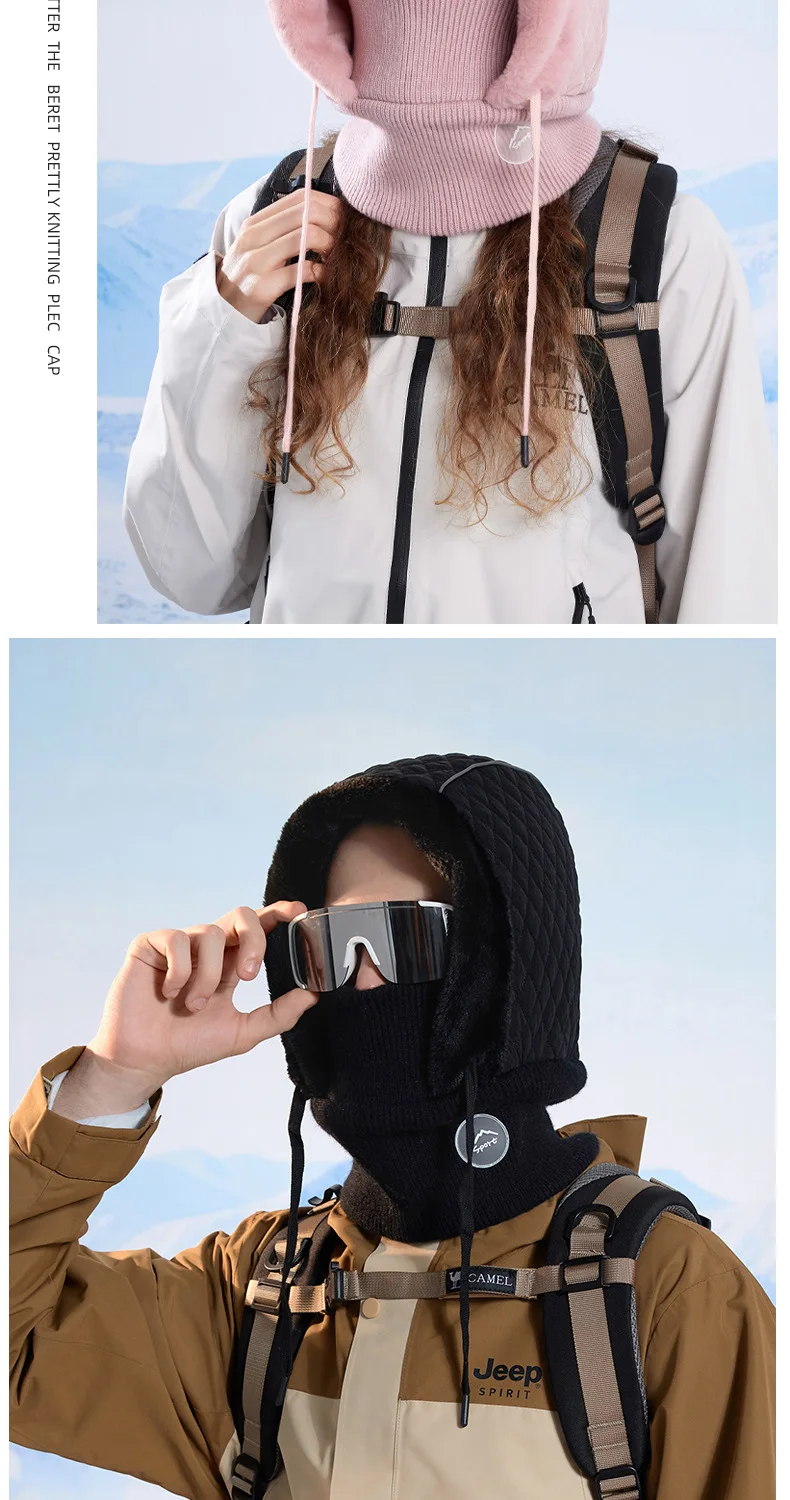 Cold Weather Thermal Balaclava Men Women Scarf Winter Windproof Hat Plush Neck Warmer Adjustable Ski Full Face Mask Outdoor Cap