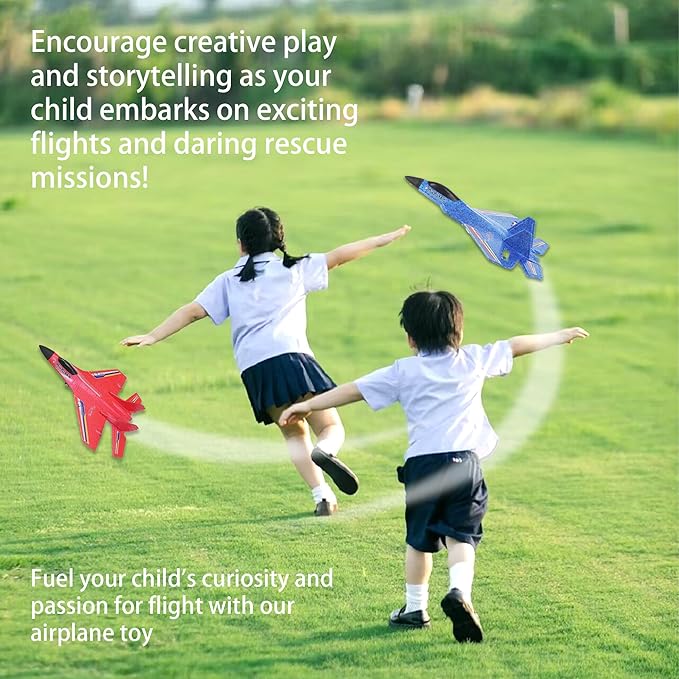 Perfect for all ages, whether at the park or backyard, this RC airplane promises endless fun and adventure. مثالية لجميع الأعمار، سواء في الحديقة أو الفناء الخلفي، هذه الطائرة تحكم عن بُعد تعد بمتعة ومغامرة لا نهاية لهما.